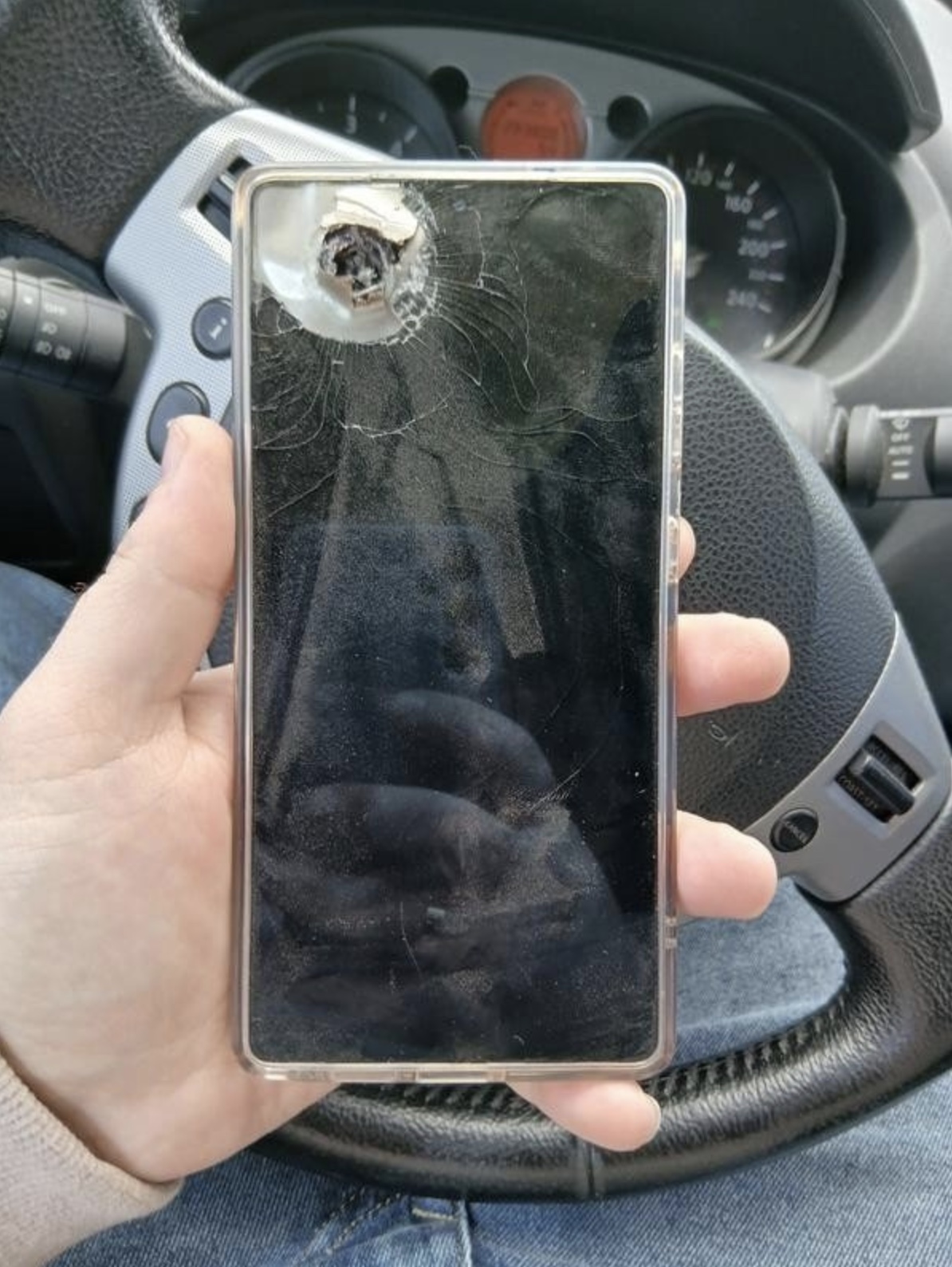 "포탄 파편이 스마트폰을 정통으로 맞췄고, 디스플레이는 손상됐지만 티타늄 프레임이 파편의 충격을 막아 생존할 수 있었다"고 밝혔습니다.