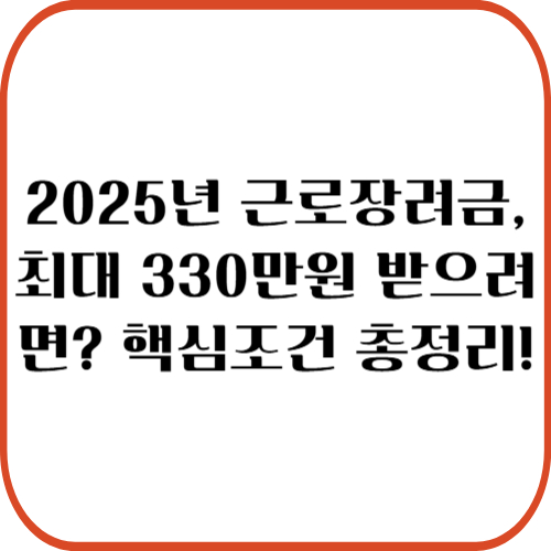 📌 2025년 근로장려금, 최대 330만원 받으려면? 핵심조건 총정리!(모르시면 손해)
