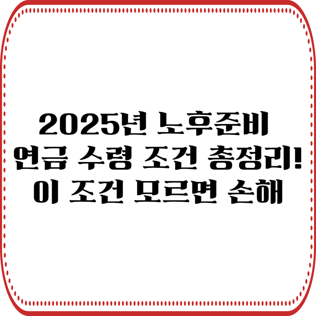 2025년 노후준비, 연금 수령 조건 총정리! 이 조건 모르면 손해