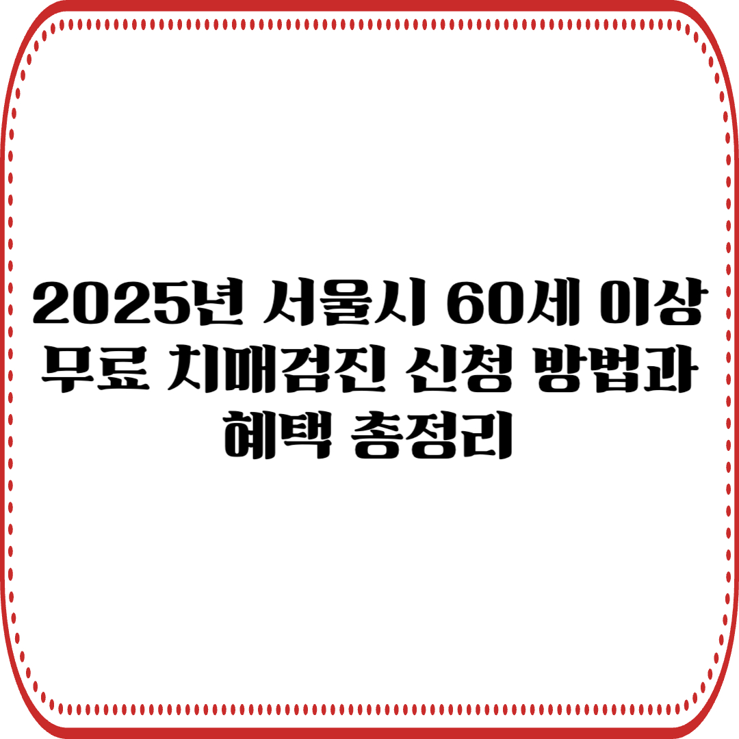 서울시에 거주하는 60세 이상 어르신이라면 2025년 5월, 무료로 치매 조기검진을 받을 수 있는 기회가 있습니다. 서울시와 25개 자치구가 함께하는 치매 집중 조기검진의 달 캠페인은 삶의 질을 높이고 가족의 부담을 줄이는 데 큰 도움이 됩니다.