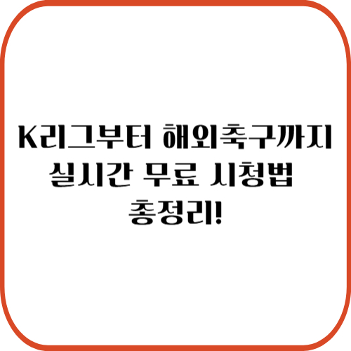그래서 오늘은 K리그 중계부터 해외축구 무료 보기까지 확실한 방법을 알려드릴게요!